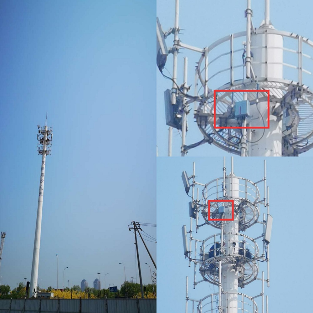信號塔上安裝好的征途科技Skyview分布式基站▼
