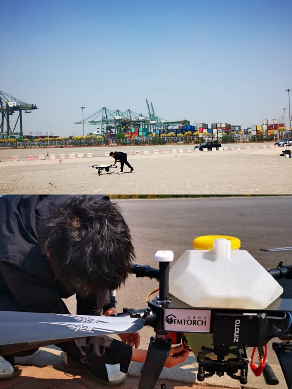 征途科技技術人員做無人機起飛前檢查調試▼